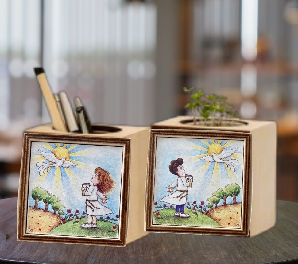 Perfetto per un’idea regalo o una bomboniera green ed ecologica. Articolo da appoggio e da appendere grazie alla fessura sul retro.