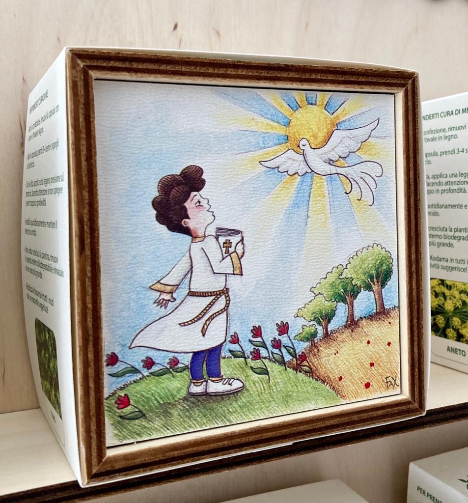 Kodama e’ un cubetto in legno di betulla,  con aggiunta di frase emozionale adatta all’occasione ,un regalo green fatto con prodotti naturali contenente un vasetto con del terriccio e dei semini di piante aromatiche o fiori da far crescere pronti per essere piantati