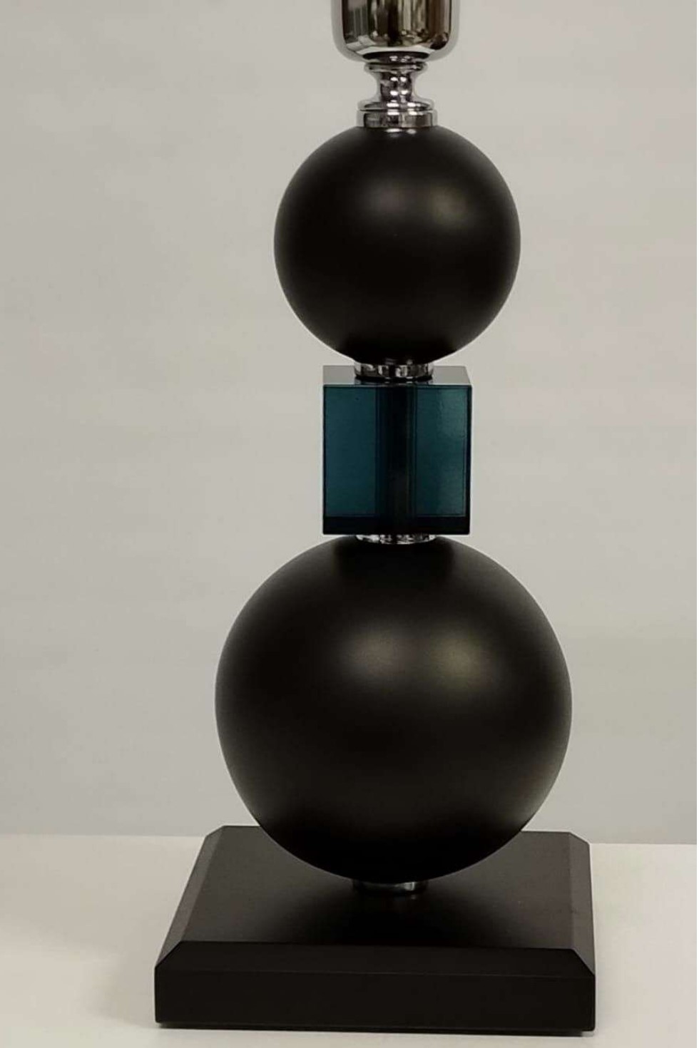 Lungo il fusto sono incastonati dei dettagli in cristallo che catturano e riflettono la luce in tante sfumature scintillanti e sfere in vetro soffiato dipinto che conferiscono un tocco di originalità e bellezza alla tua illuminazione, Base quadrata