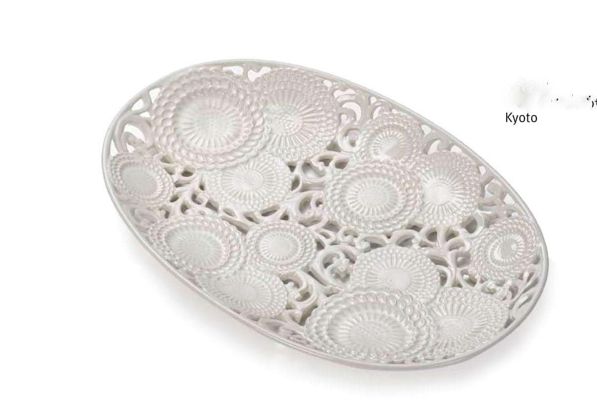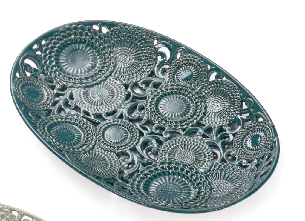 piatto ovale realizzato in porcellana con decoro etno chic ed elementi traforati made in italy.