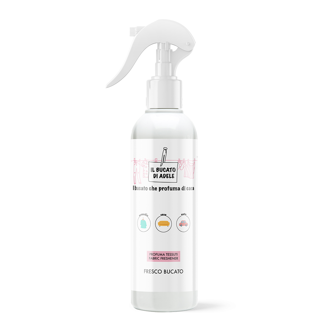 Il profuma tessuti Il Bucato di Adele è ideale per rinfrescare e profumare i tuoi capi. Provalo anche sulle tende, sul divano e sui sedili dell’auto. La sua formula non macchia e regala una fragranza intensa e persistente.