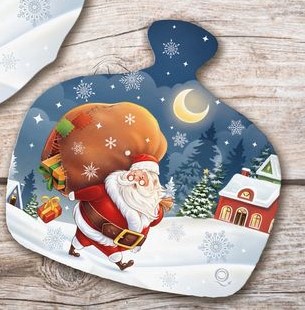 originale tagliere in legno con stampa natalizia lavabile in alta definizione nella parte centrale , con predisposizione per essere appeso alla parete,meraviglioso prodotto artigianale made in italy che regala un tocco di pregio alla vostra tavola.