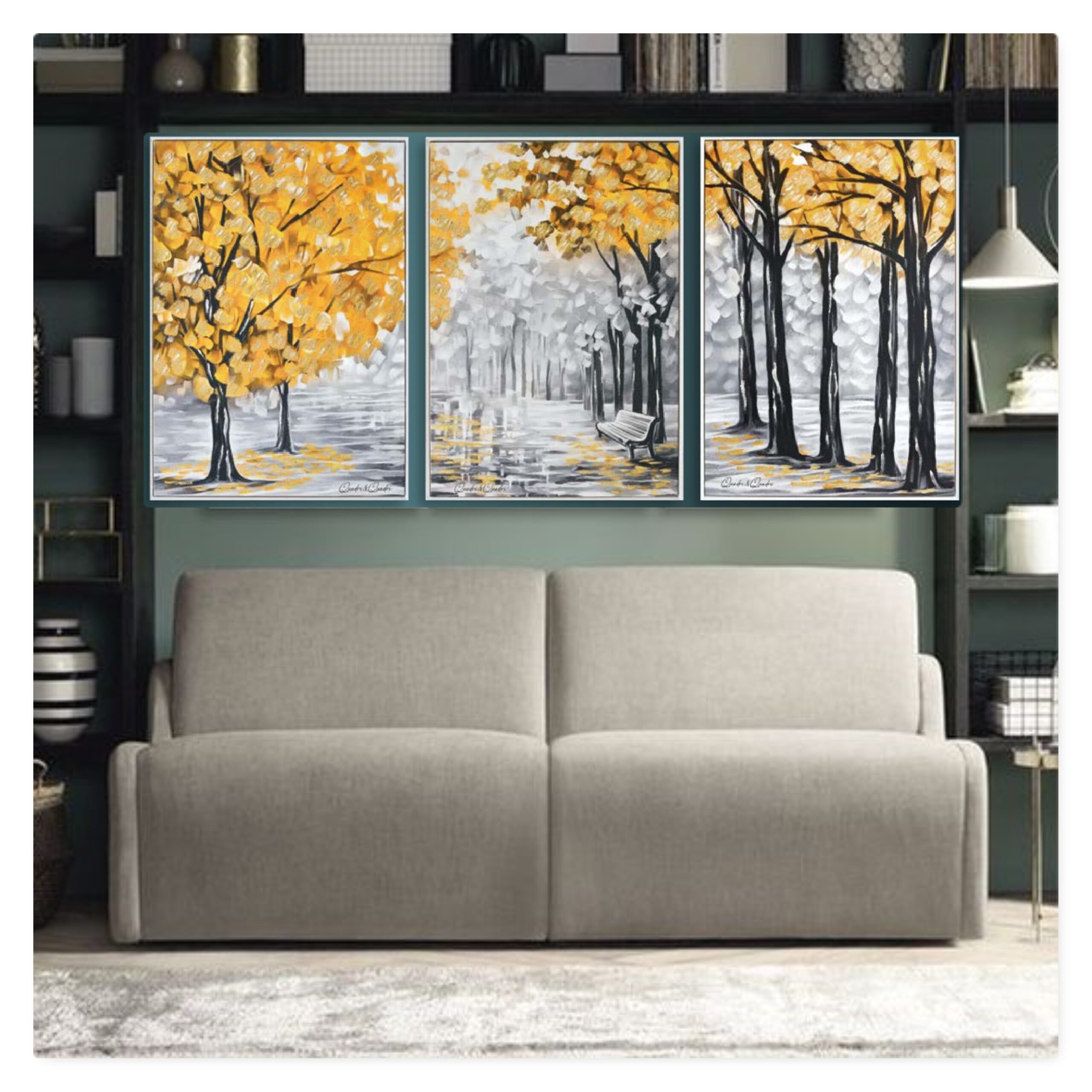 Ogni trittico è composto da tre quadri verticali, ognuno caratterizzato da una stampa ad alta risoluzione con pennellate a rilievo dipinte a mano, rendendo ogni pezzo veramente speciale.
