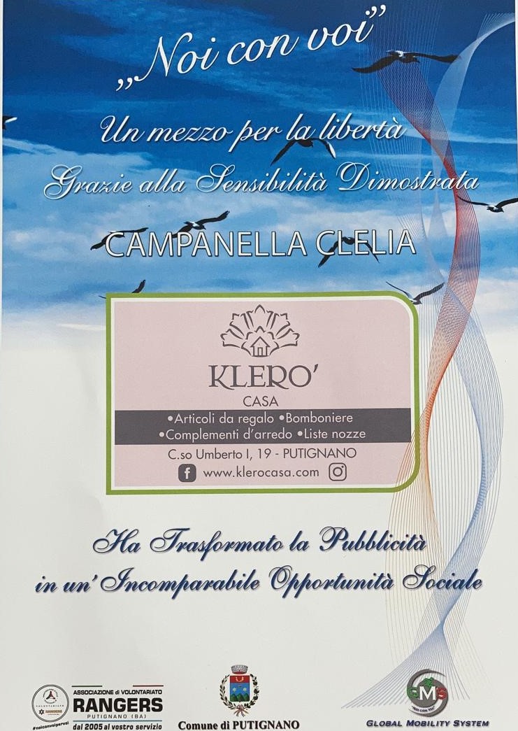 Klero’ Casa non e’ solo un attivita’ commerciale ma e’ anche molto vicina alle problematiche